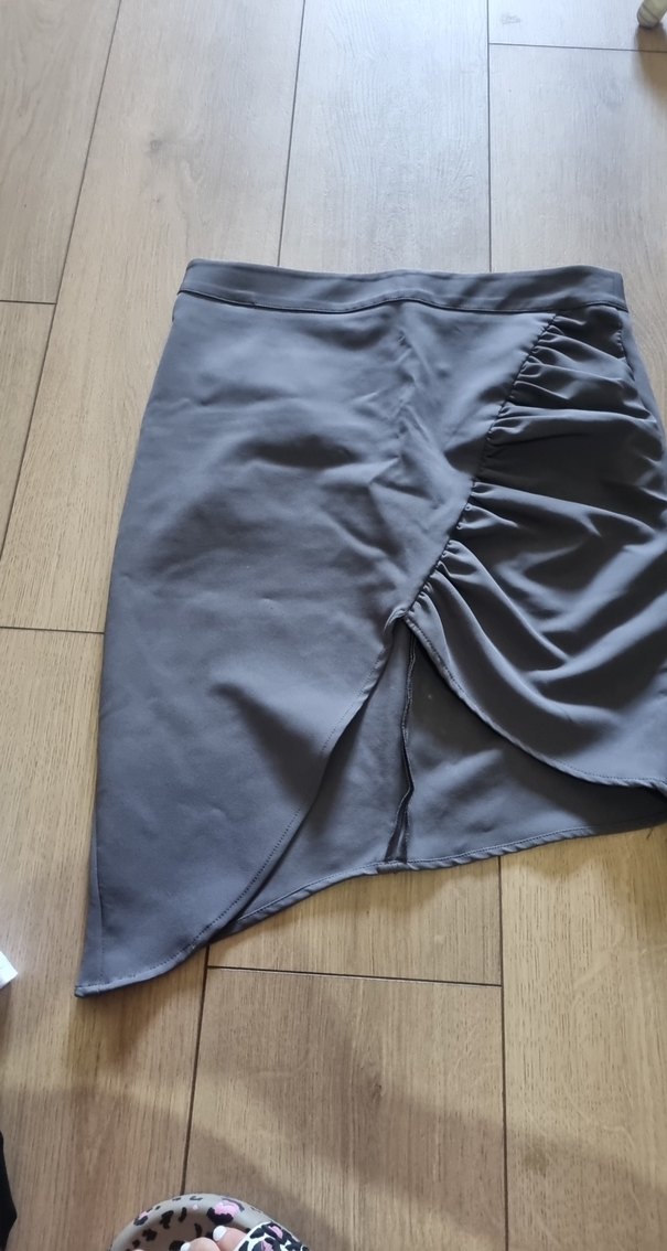 Gri Drapeli Midi Mini Etek