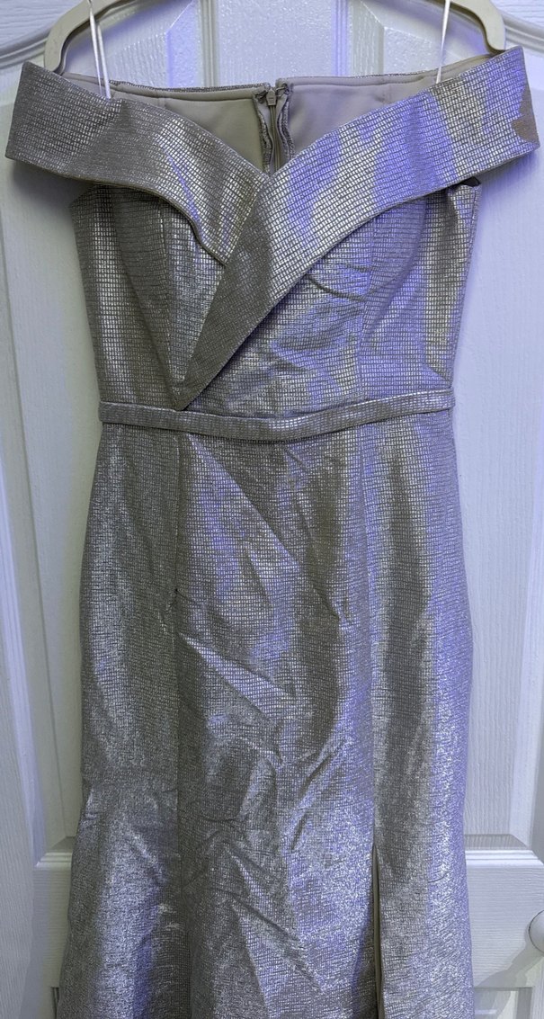 Bu gri, drapeli uzun abiye elbise, tekne yaka ve kolsuz tasarımıyla şık bir görünüm sunar. Çağdaş stiliyle göz alıcıdır. ✨