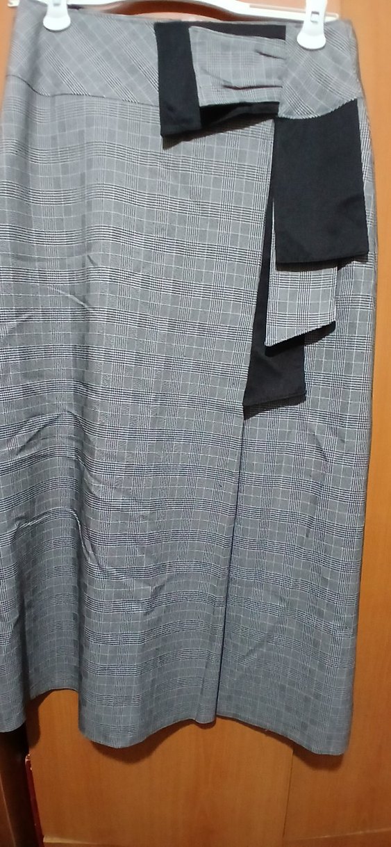Drapeli tasarıma sahip uzun gri rahat kesim ve sentetik kumaştan üretilmiştir. İş ortamları için uygundur. boy 90 cm