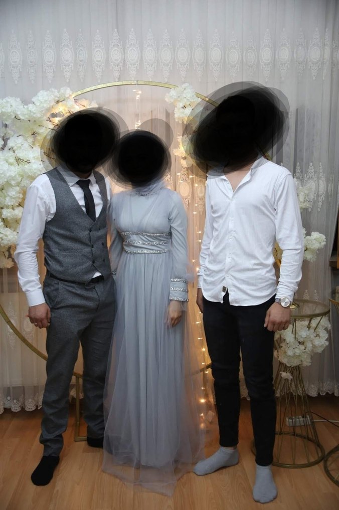 Bu gri drapeli, uzun kollu, yakalı ve vücuda oturan nişan elbisesi, bohem ve avangard tarzıyla trend belirleyenler için ideal. 1 kez kullanıldı ve çok temizdir