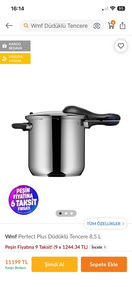8,5 litrelik kapasiteye sahip gri düdüklü tencere, güvenli tutma sapıyla rahat kullanım sağlar. Taksit avantajı mevcuttur.kardesim 2lisini getirdiği için yurtdışında bu boşa cıktı iki fefa kyllanıldı sıfır gibi tertemiz