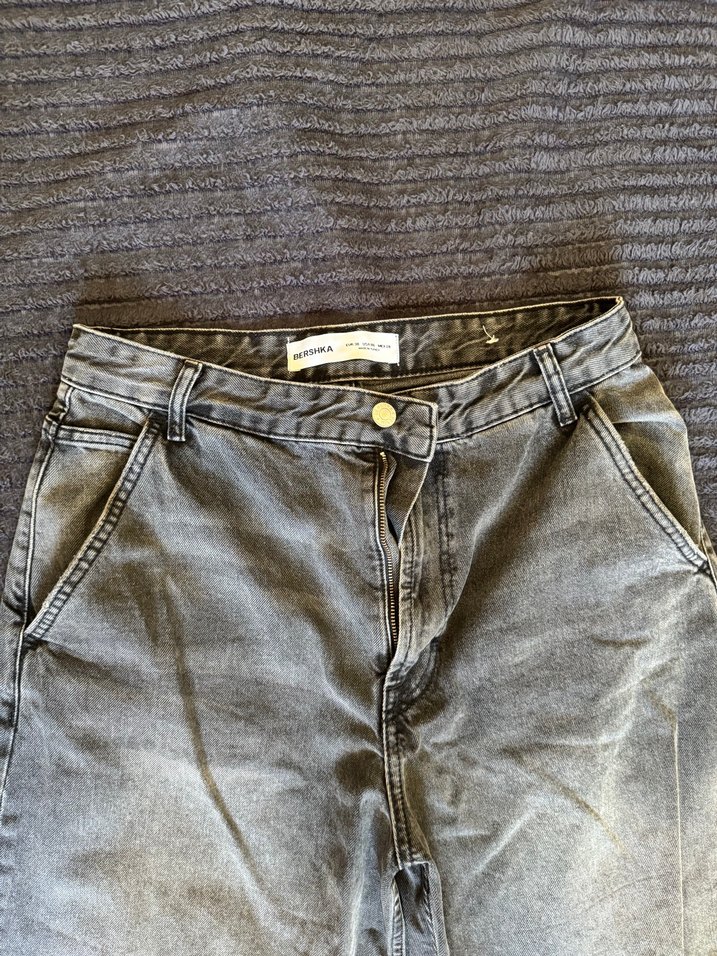 Gri Düğmeli Baggy Kadın Kot Pantolon 38 beden Bershka