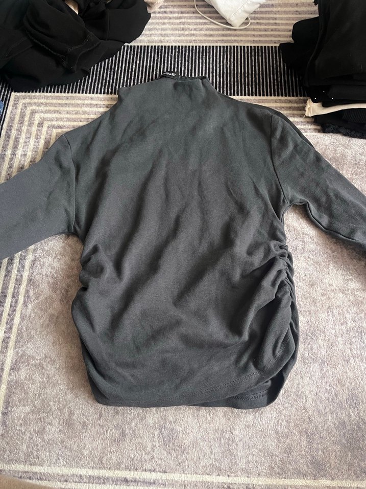 Gri renkte, düğmeli ve balıkçı yakalı hamile kazağıdır. Uzun kollu, rahat kesim ve midi boydadır. Yumuşak keten kumaştan üretilmiştir.