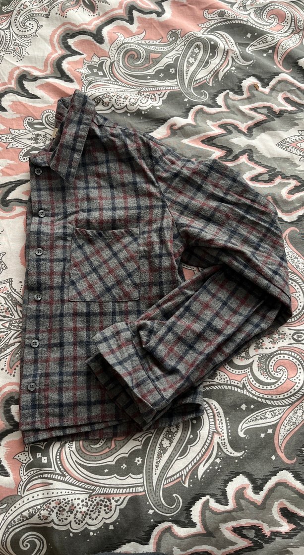 Gri Düğmeli Bol Kesim Kadın Gömlek
