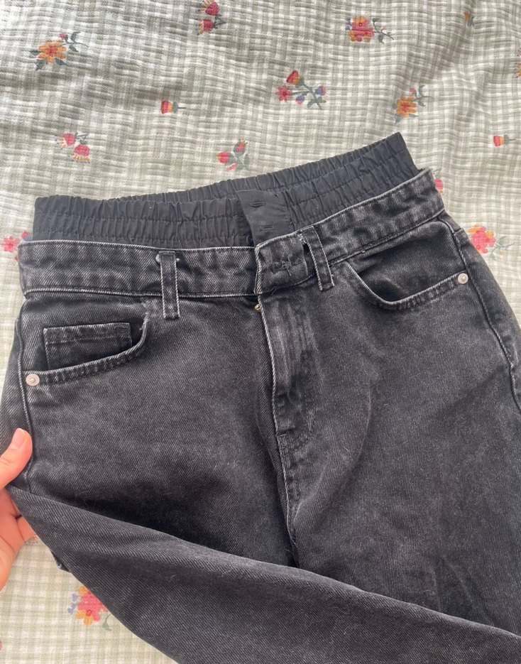 Gri Düğmeli Bol Kesim Kadın Kot Pantolon