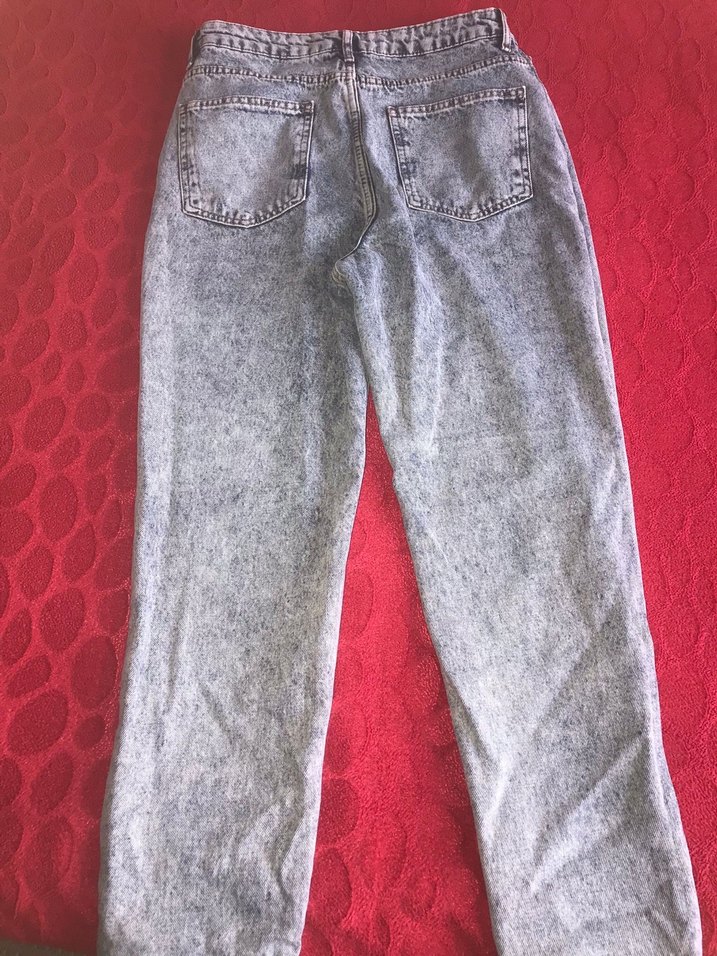 Gri renkte, düğmeli detaylı bol kesim midi boy kot pantolon