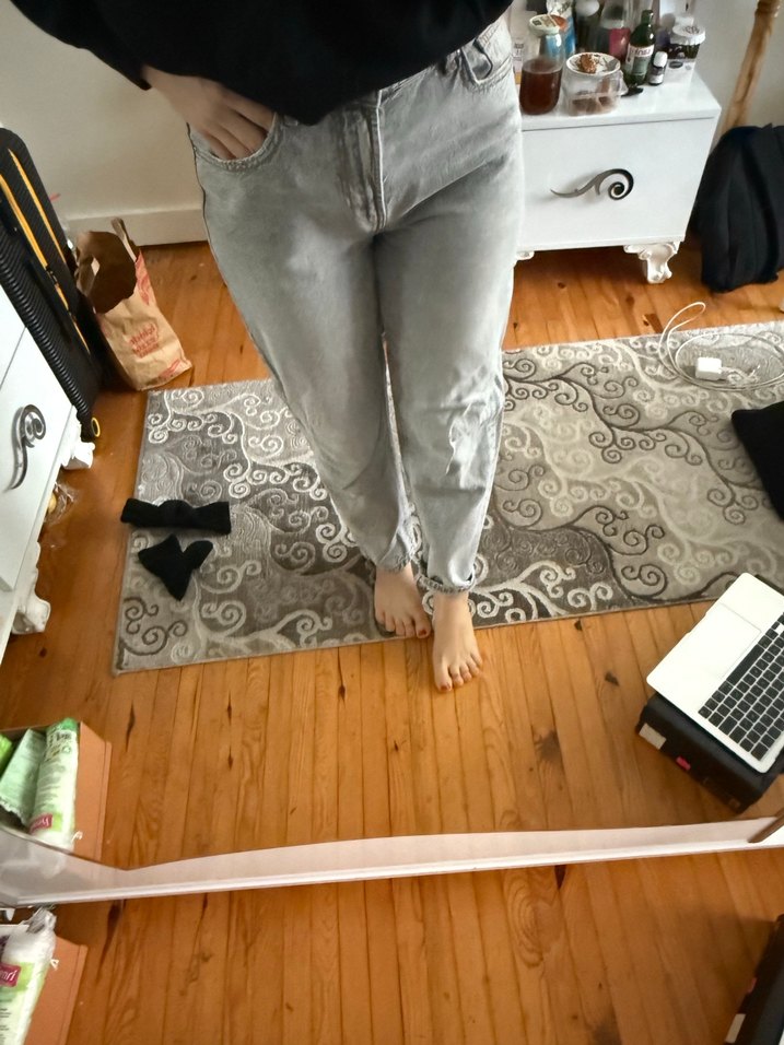 Gri Düğmeli Bol Kesim Midi Kot Pantolon