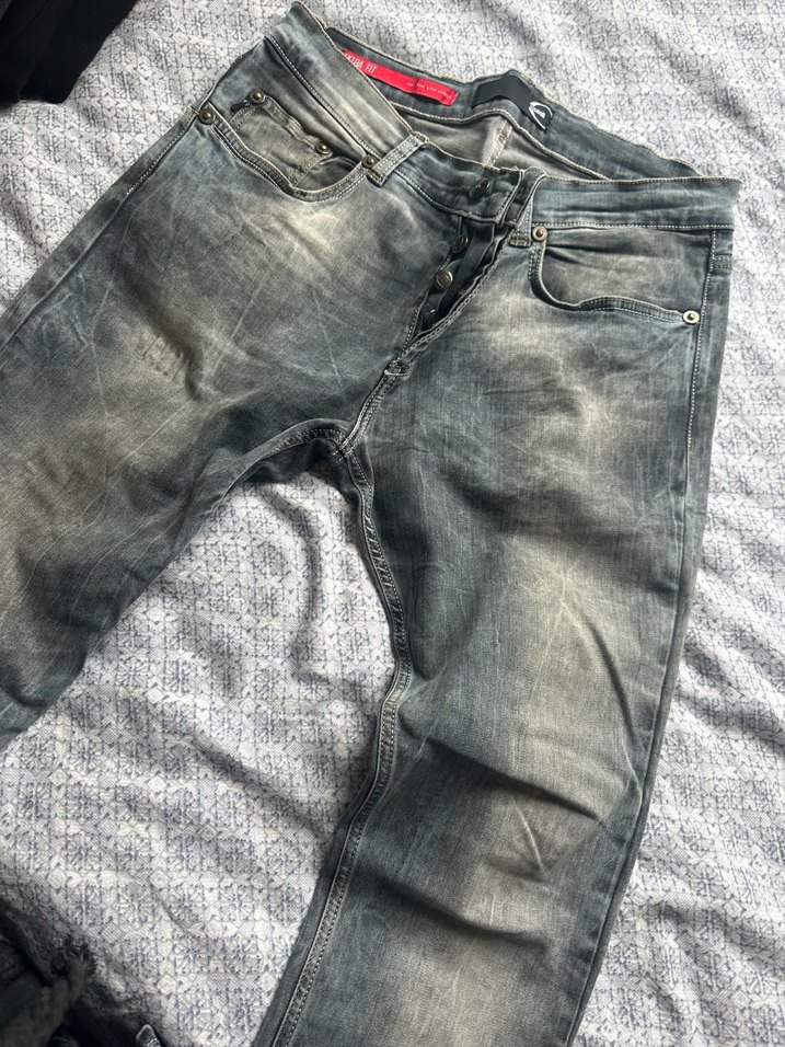 Gri Düğmeli dar Kesim Erkek Kot Pantolon