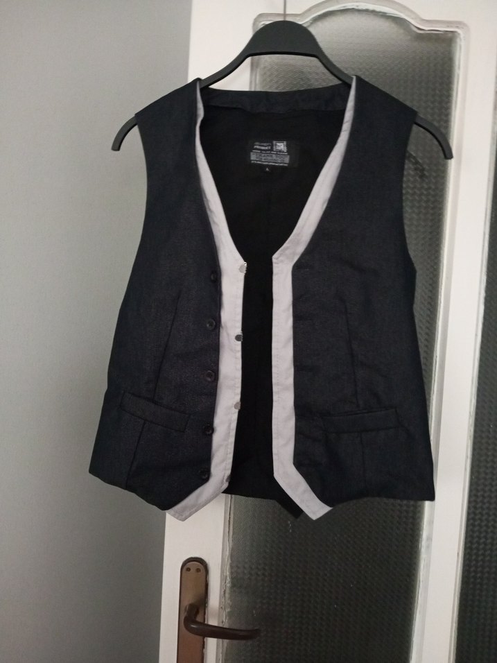 Gri denim kumaştan, düğmeli ve yakalı, regular fit kesime sahip, kolsuz erkek yeleği. Hem günlük hem ofis kullanımı için uygundur. ✨