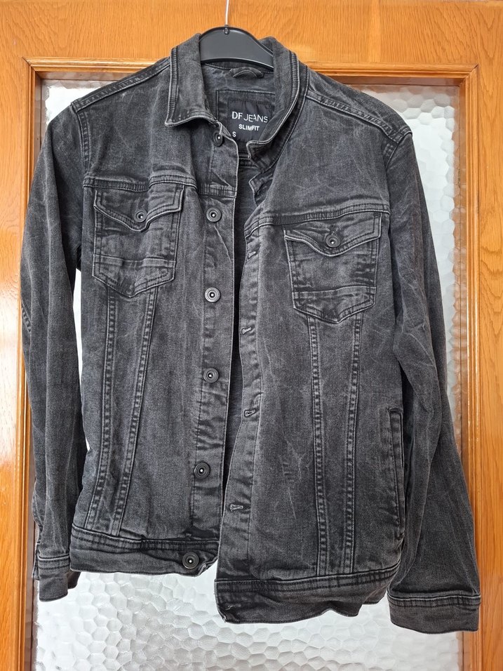 Gri Düğmeli Erkek Denim Ceket