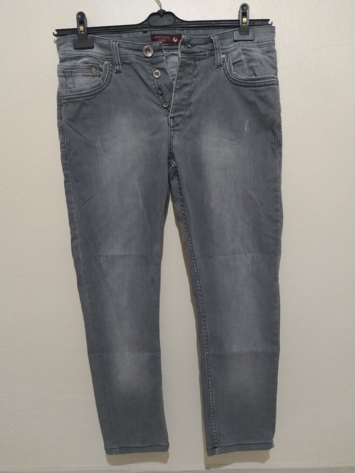 Gri Düğmeli Erkek Denim Pantolon