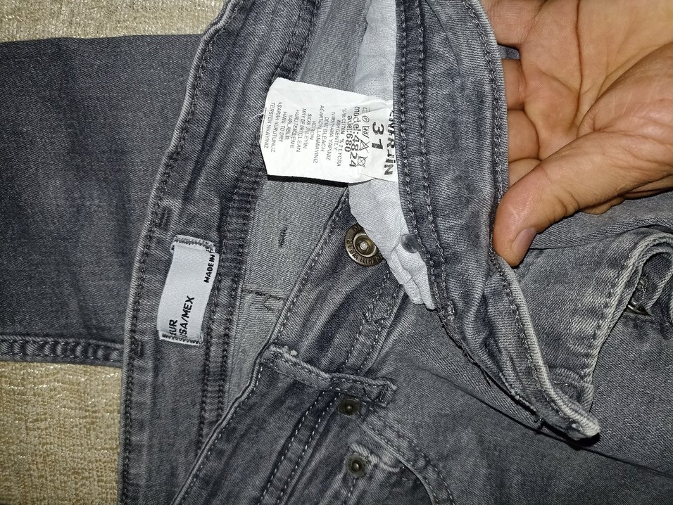 Gri Düğmeli erkek Denim Pantolon