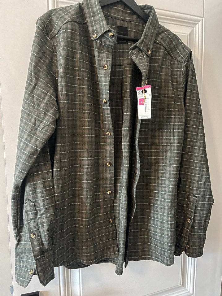 Gri renkte, düğmeli ve uzun kollu erkek gömleği. Sentetik kumaştan, rahat kesim ve kareli desene sahip, günlük sokak stiline uygun bir parça.