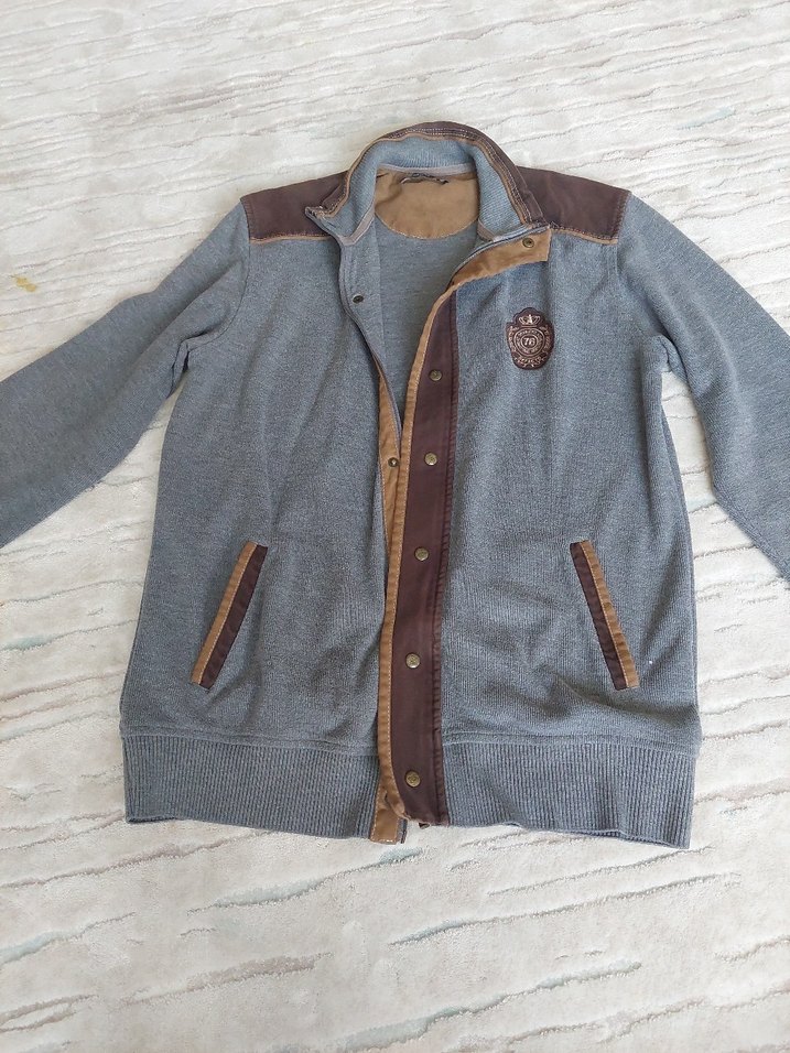 Gri renkli, düğmeli erkek hırka. Notlu yakalı, uzun kollu ve rahat kesimdir. Yumuşak ve sıcak kumaştan üretilmiştir, günlük kullanıma uygundur.