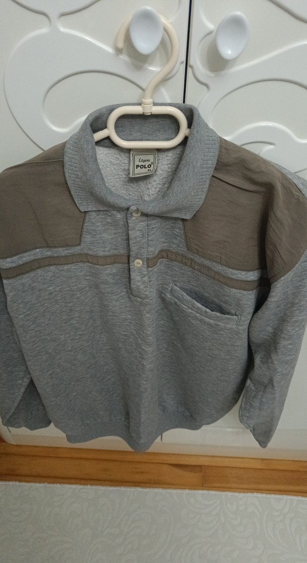 Gri Düğmeli Erkek Keten Sweatshirt