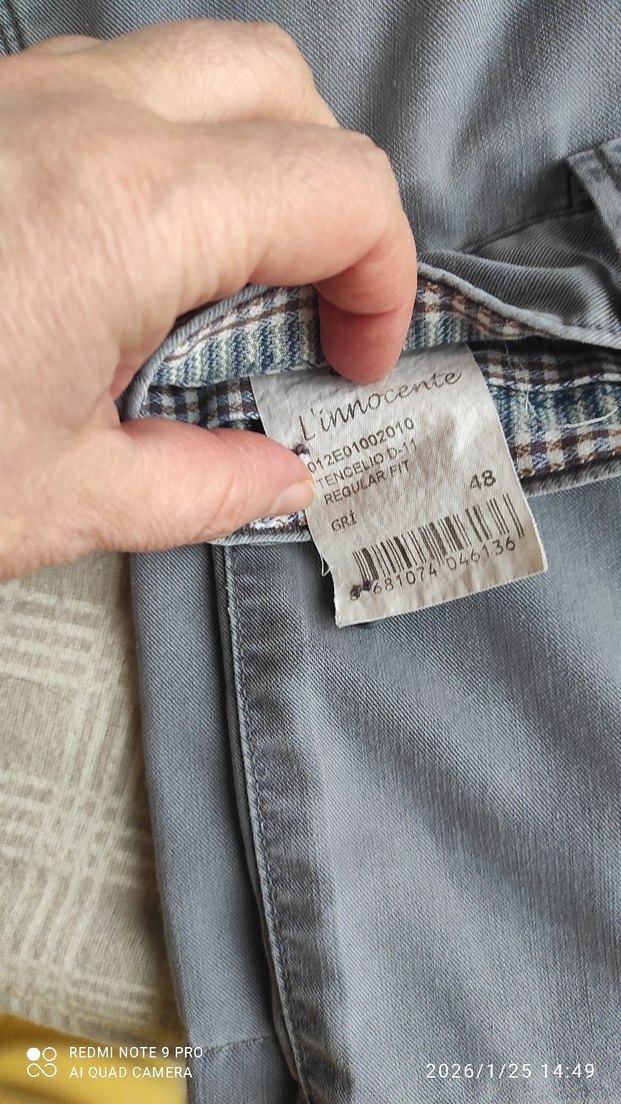 Düğmeli, gri renkte ve normal boyda erkek kumaş pantolon. Denimden üretilmiş, normcore tarzıyla günlük rahat kullanıma uygun. Yeni gibi