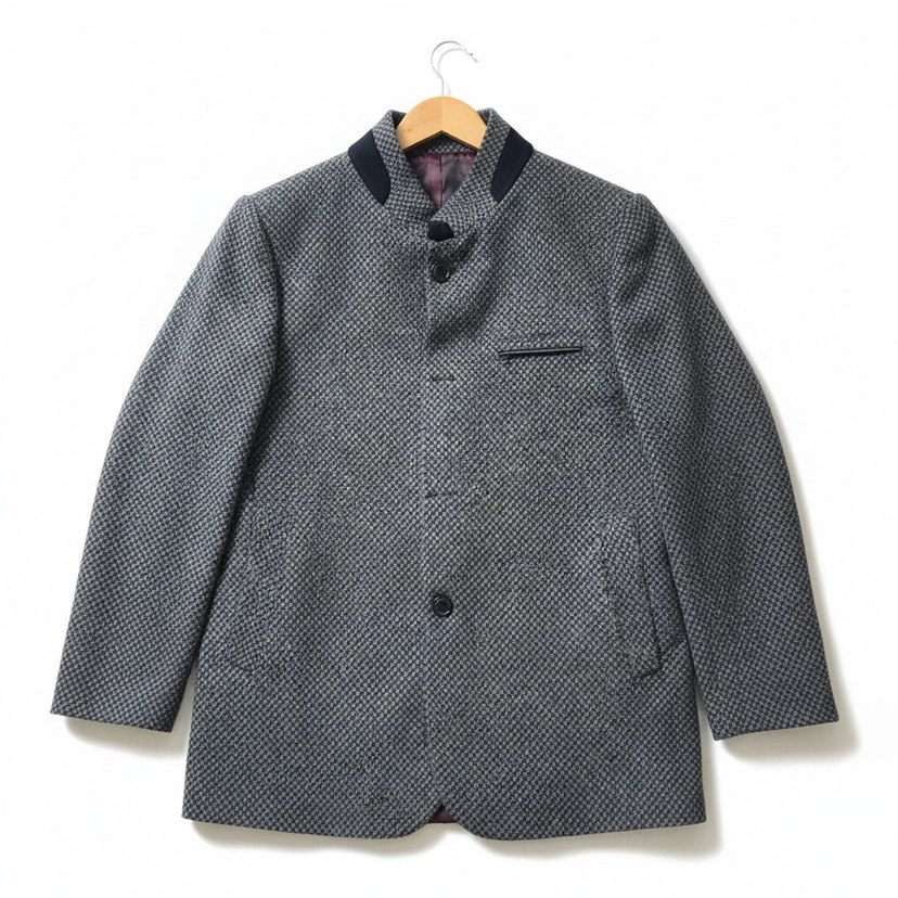 Bu erkek gri yün ceket, kesik yakalı, düğmeli ve uzun kolludur. Normal kesim ve midi boyda olup ofis ve sokak tarzına uygundur. obita