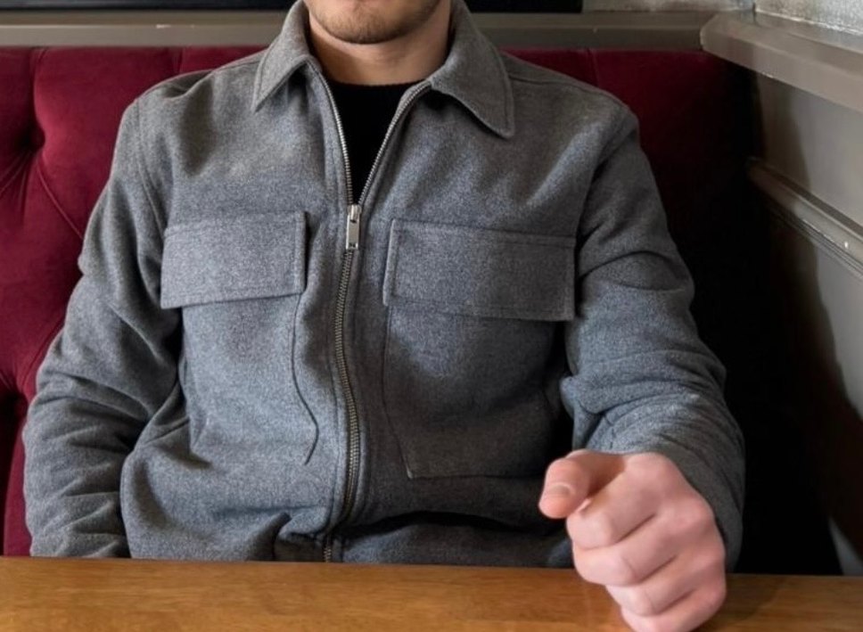 Gri renkte, düğmeli, notched lapel yakalı erkek midi ceketi. Yumuşak ve rahat fleece kumaştan, günlük kullanım için uygun, sade ve şık bir tasarıma sahip.