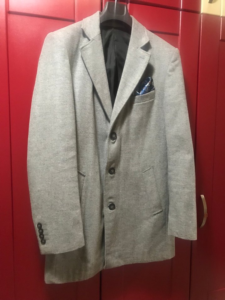 Gri, düğmeli, normal boy midi erkek ceket. Yaka tipi kesik, uzun kollu ve rahat kesim. Ofis ve günlük kullanıma uygun, yumuşak ve sıcak kumaş.
