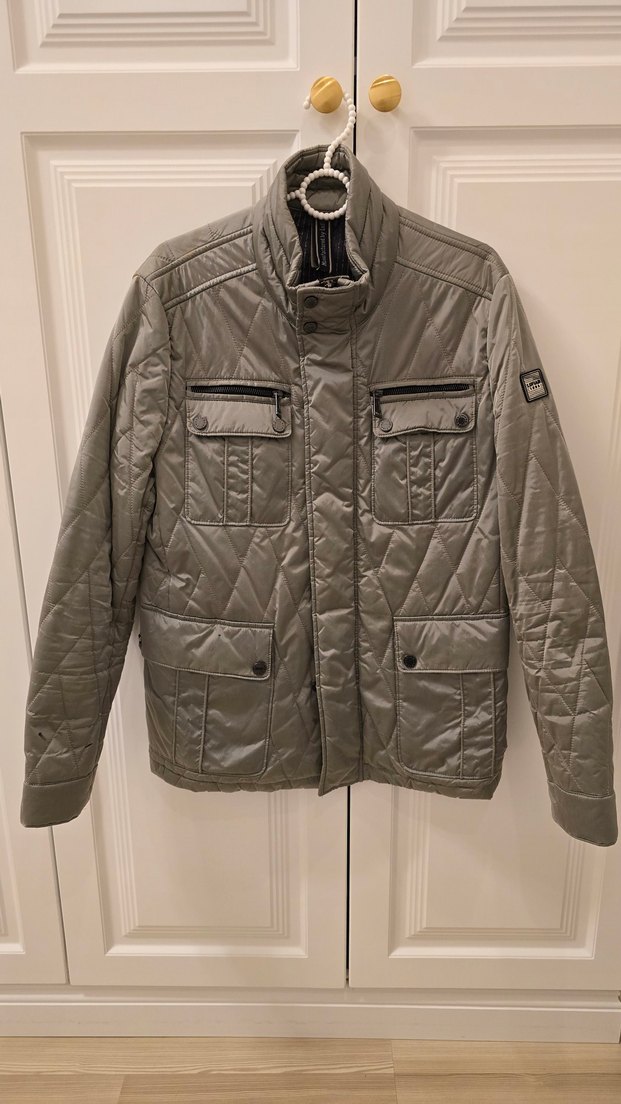 Düğmeli ön ve kesimli yakaya sahip erkek mont. Uzun kollu, normal midi boyda ve regular fit. Sentetik kumaştan, kapitone dokulu ve çok cepli, sokak stili için uygun.