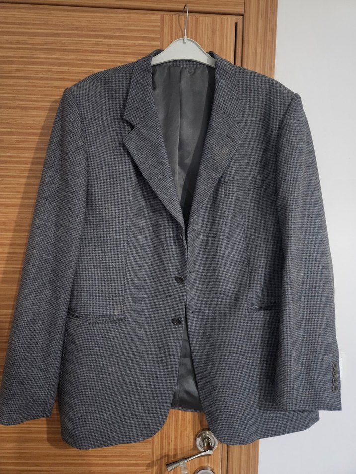 Gri renkte, düğmeli ve uzun kollu erkek takım elbise ceketi. Ofis için uygun, klasik ve desen içermeyen, normal kesimle tasarlanmıştır. ️ temizdir az kullanılmış 58 beden