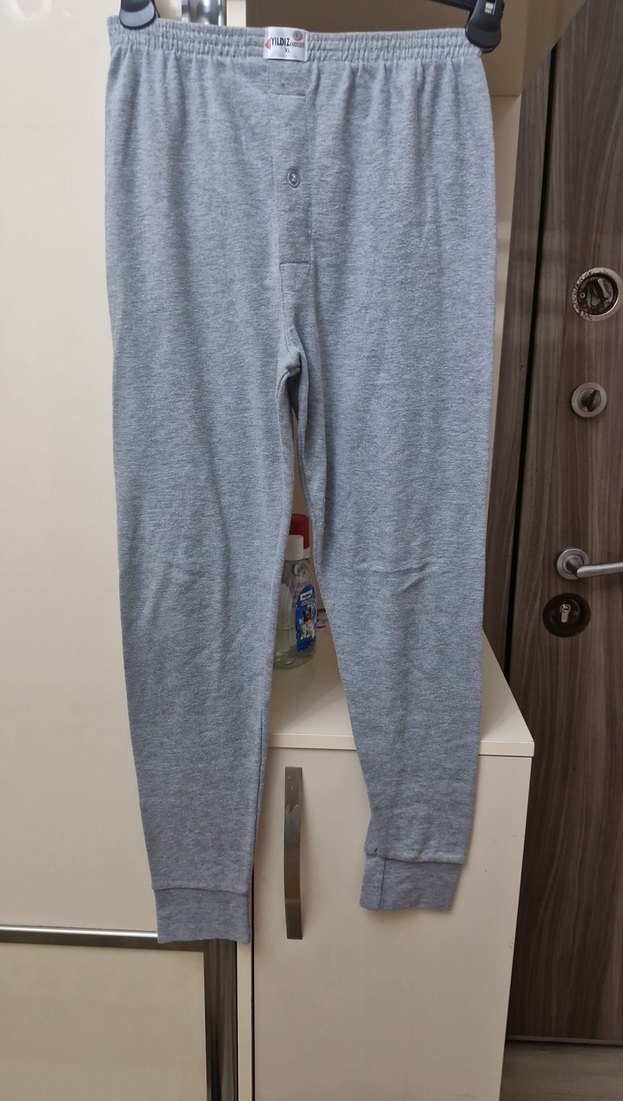 Gri renkli, düğmeli ve uzun kollu erkek pijama altı, rahat ve şık bir görünüm sunar. Normcore tarzıyla gündelik kullanıma uygundur.