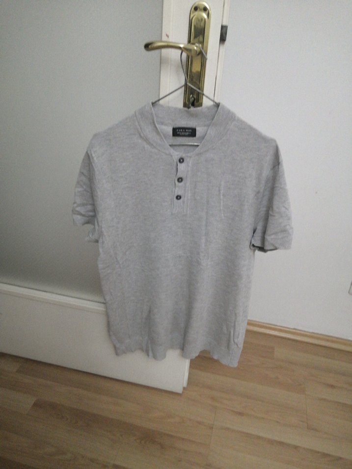 Gri Düğmeli Erkek Triko Tişört L beden boy 66 cm en 48 cm dir.