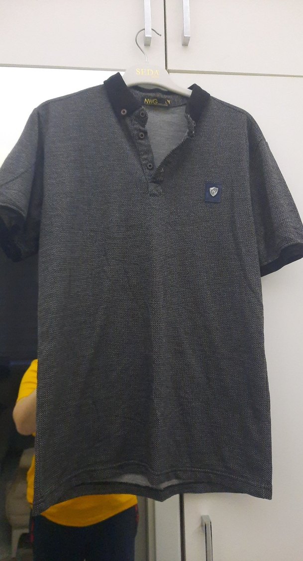 Gri renkte, düğmeli yakalı ve kısa kollu erkek polo tişört. Rahat kesimli ve küçük baskılı amblem detaylı. Yumuşak sentetik kumaştan üretilmiştir. 1 kere kullanıldı hiçbir kusuru yoktur tertemiz sorunsuzdur