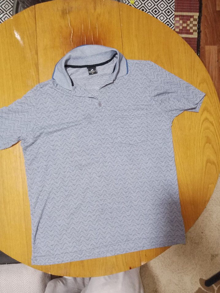 Düğmeli yakalı, kısa kollu gri erkek polo tişörtü. Rahat kesimi ve yumuşak sentetik kumaşı ile günlük kullanıma uygundur.