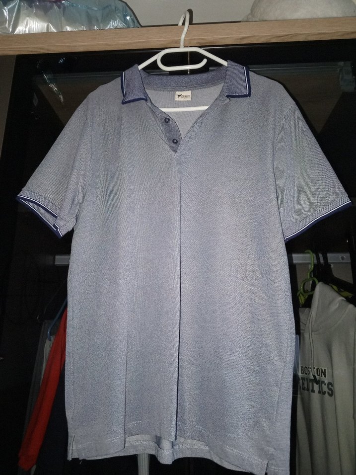 Gri renkte, düğmeli ve yakalı kısa kollu erkek polo tişört. Denim kumaştan, rahat kesim ve günlük sokak stili için uygundur. altın yıldız marka hiç kullanılmadı L beden uyumlu