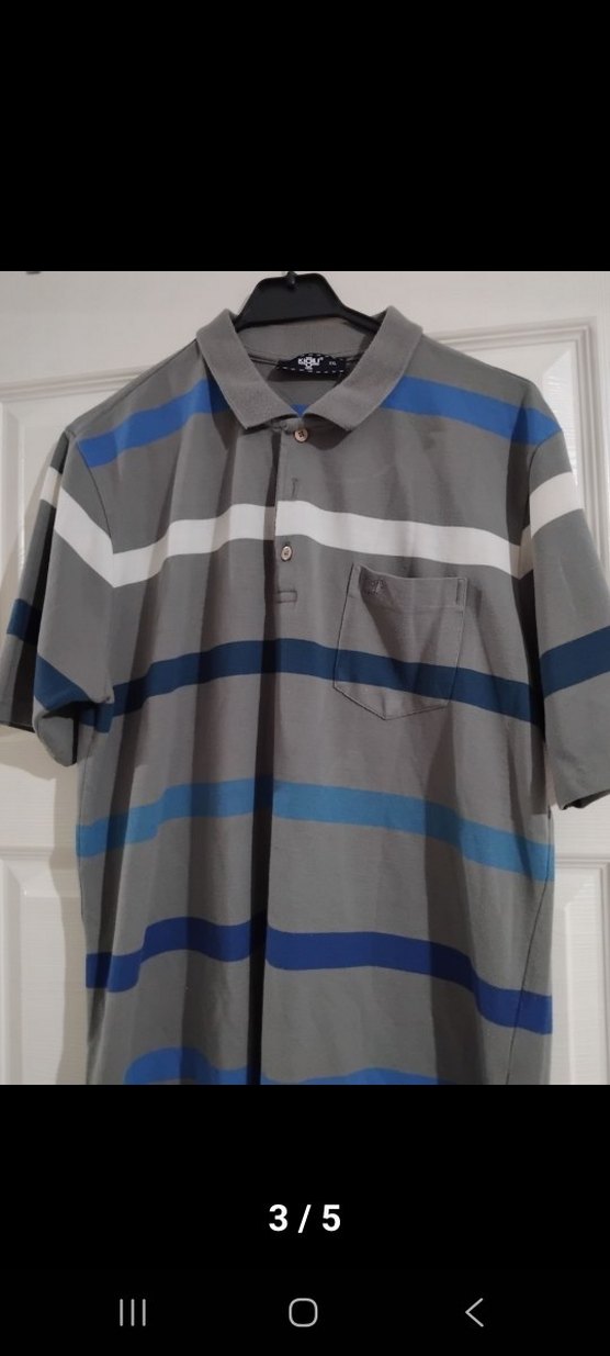Gri ve mavi tonlarda çizgili, düğmeli ve cep detaylı, kısa kollu, yakalı, bol kesim erkek polo tişört. Sentetik kumaştan, günlük rahat stil için uygun. iki kol arasi 60cm boy 70 cmdir lütfen inceleyip alınız iade kabul etmiyorum