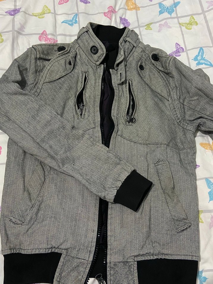 Gri Düğmeli Erkek Sokak Stili Mont