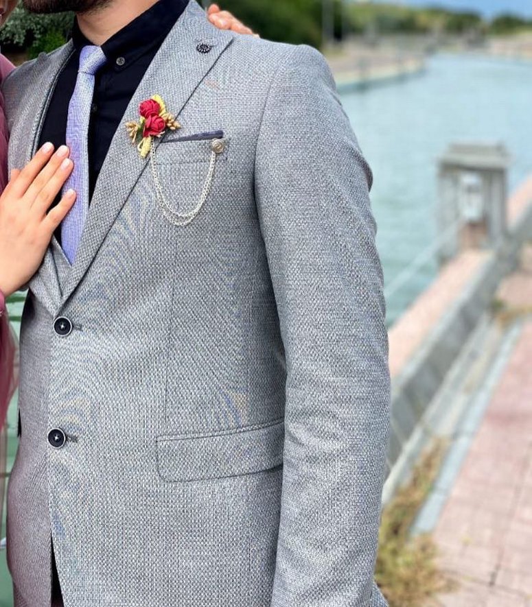 Gri Düğmeli Erkek Takım Elbise