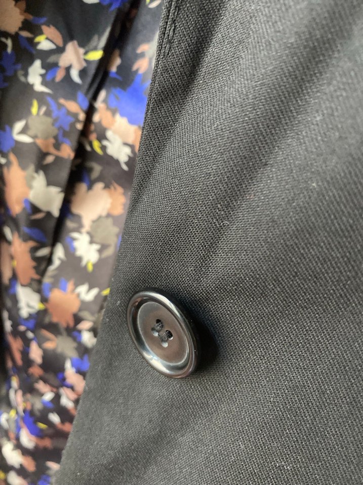Siyah renkte, düğmeli midi ceketi. Notlu yaka ve baskılı astarıyla ofis ortamına uygun, uzun kollu ve normal boyda.