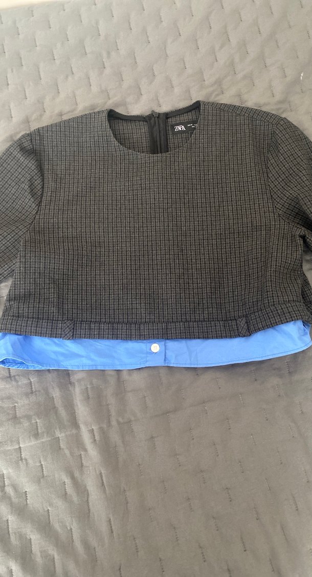 Gri renkli, düğmeli, yuvarlak yakalı uzun kollu hamile triko üstü. Rahat kesim ve kısa yumuşak pamuk kumaştan üretilmiştir.