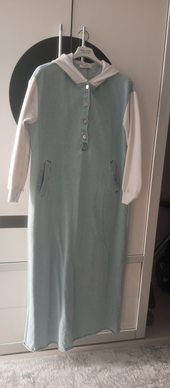 Gri Düğmeli Jean kumaş Kadın Uzun Elbise