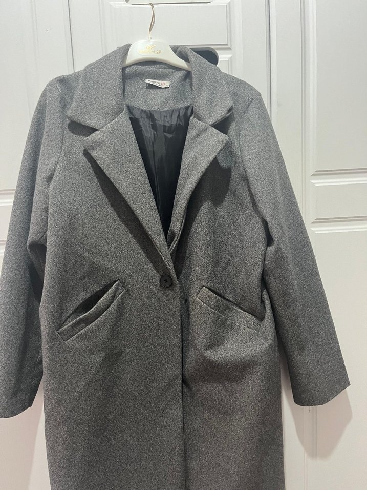 Gri renkte, tek düğmeli, klasik yakalı kaban. İki cep ve iç kısmında rahat astar bulunur.