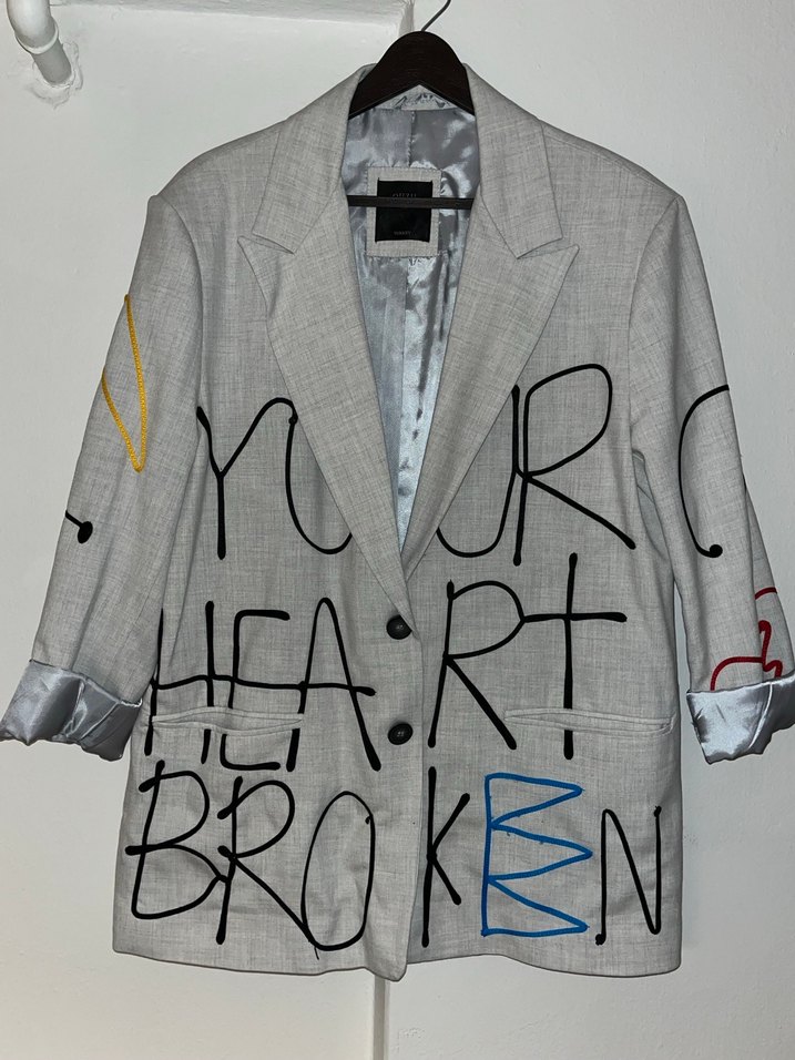 Gri keten kumaştan, düğmeli ve yakalı kadın blazer ceket. Uzun kollu, normal kesim ve midi boyda, ofis ve günlük iş tarzı için uygun. ✨