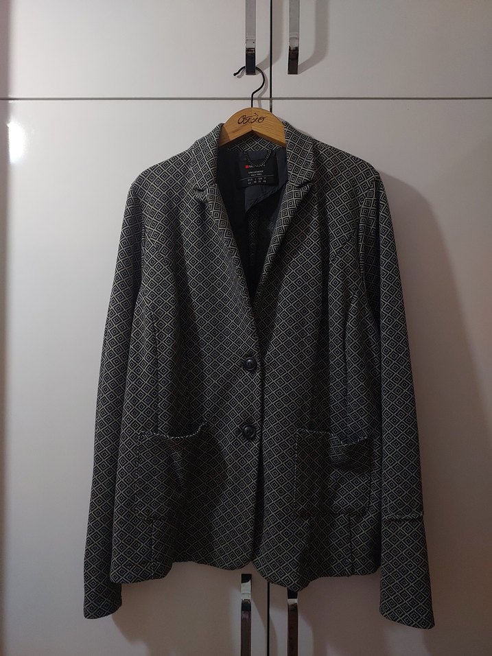 Gri, düğmeli, normal uzunlukta kadın blazer ceket. Uzun kolludur, ince kumaştır, ofis ve günlük kullanıma uygundur. 44 beden yazıyor fakat S giyiyorum bana tam oluyor.