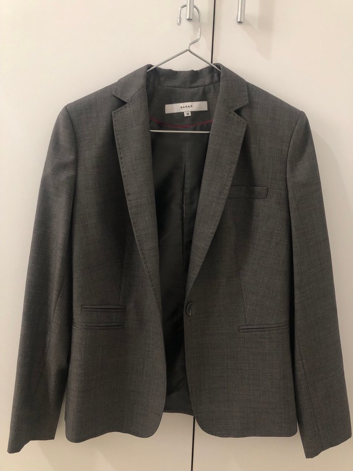 Gri Düğmeli Kadın Blazer Ceket