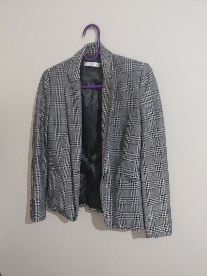 Gri Düğmeli Kadın Blazer Ceket