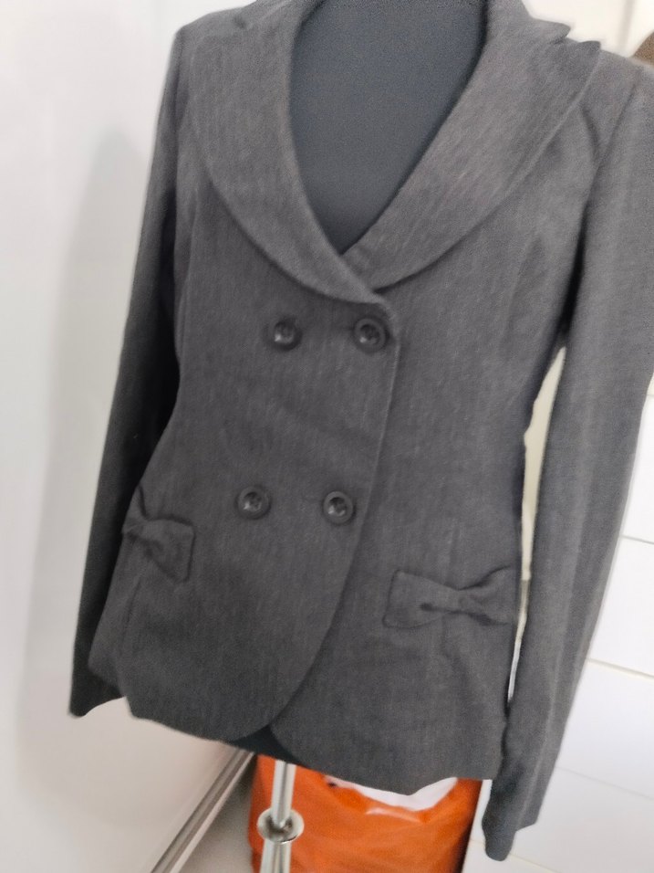 Gri renkli, düğmeli, keten kumaştan kadın blazer ceket. Normal boy ve regular fit kesime sahip, uzun kolludur. Ofis kullanımı için uygundur.