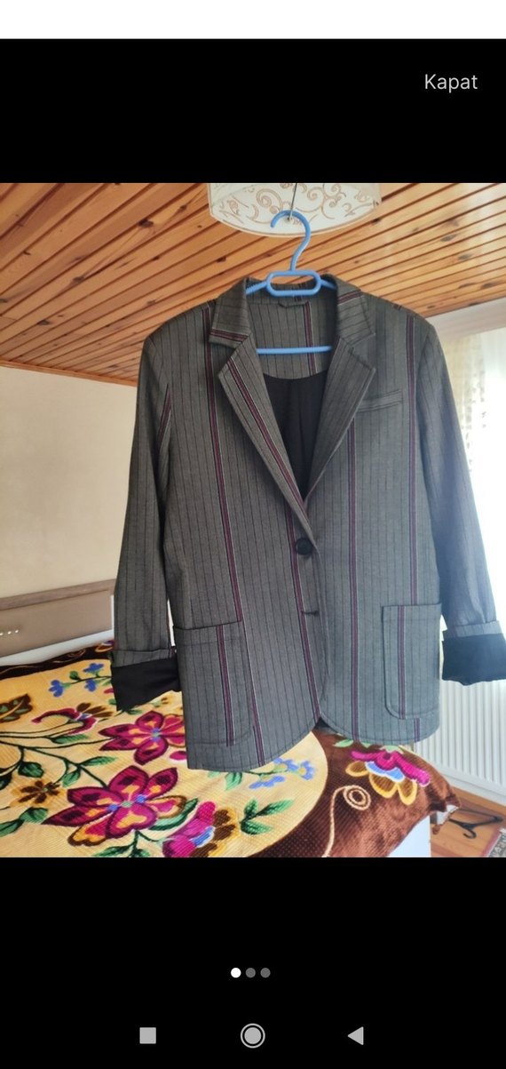 Gri Düğmeli Kadın Blazer Ceket