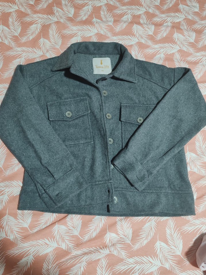 Gri renk, düğmeli, uzun kollu, yumuşak ve sıcak kumaştan kadın ceket. Salaş kesim ve normal boy ile rahat sokak stili için uygundur. Kumaşı kaşedir. Marka temsilidir