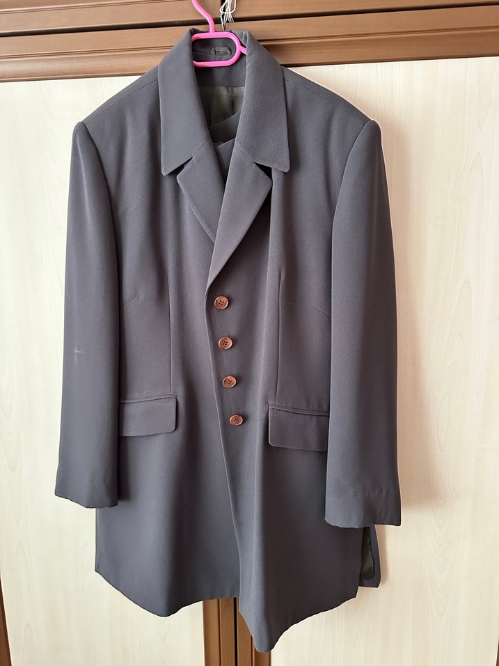 Gri renkte, düğmeli kadın takımı ceket etek bluz Normal uzunlukta