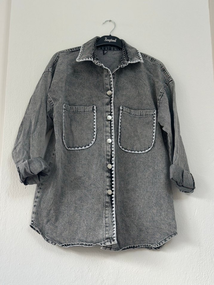 Gri Düğmeli Kadın Denim Ceket