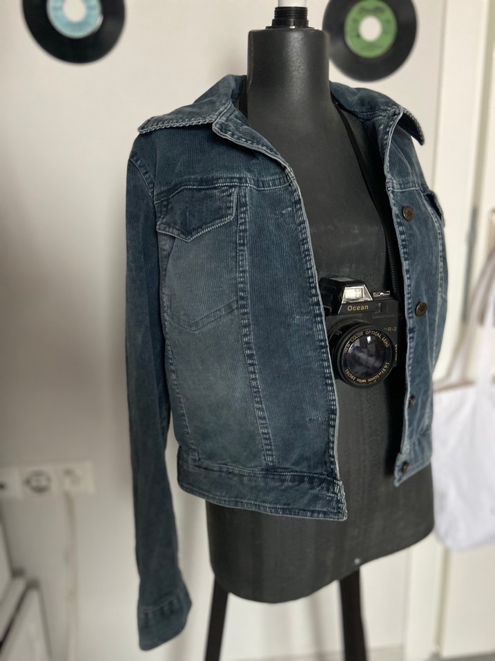 Gri renkte, düğmeli ve yakalı, fitted kesim kadın denim ceket. Normal boy ve askılı kolludur, günlük rahat kullanım için uygundur.