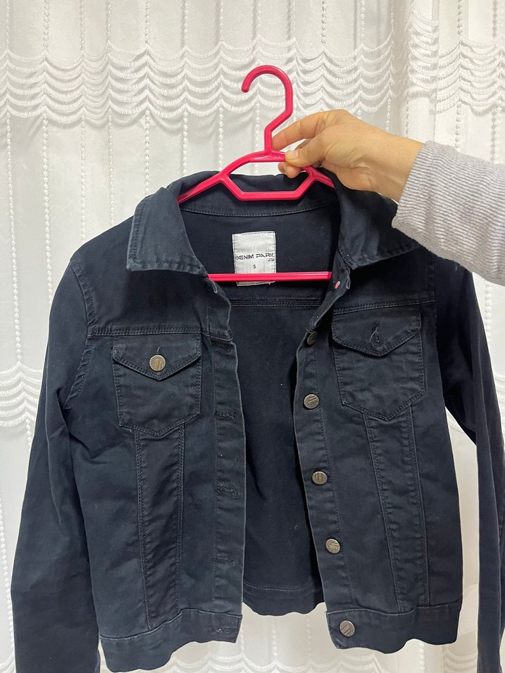 Gri Düğmeli Kadın Denim Ceket