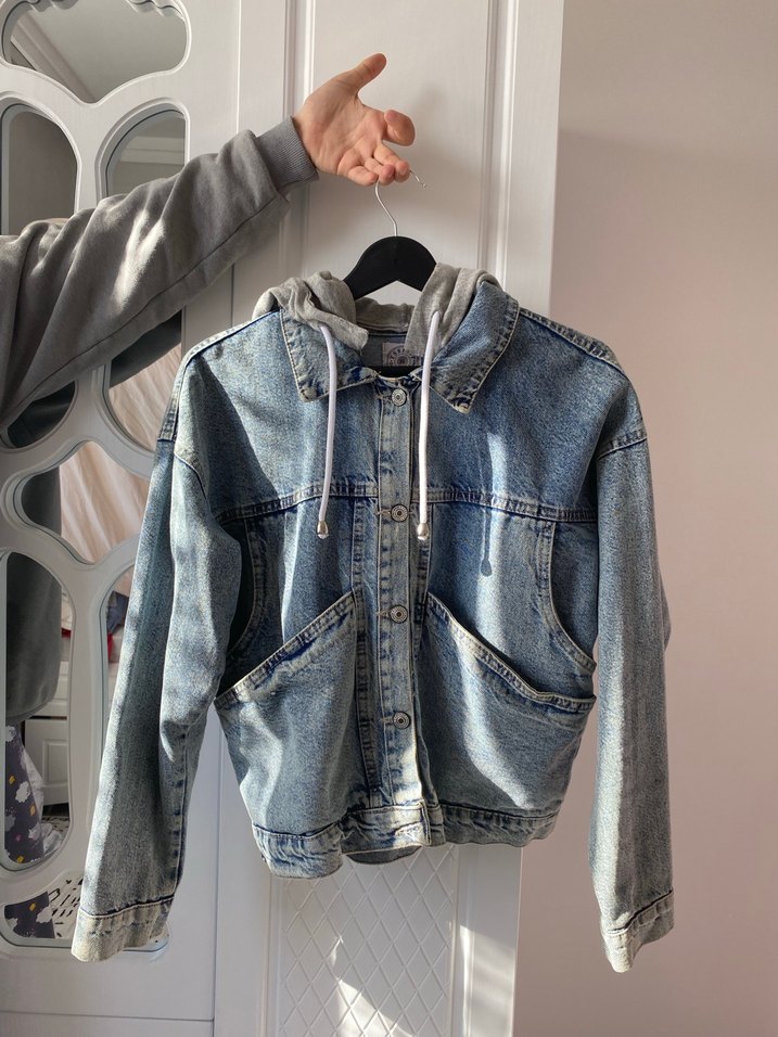 Gri Düğmeli Kadın Denim Ceket