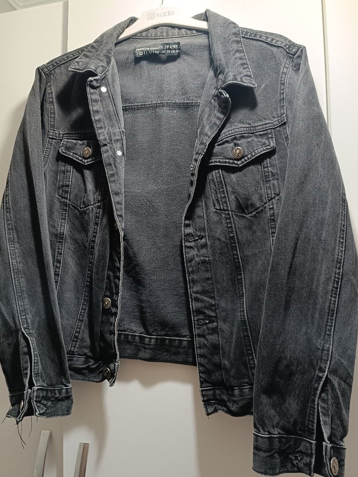 Gri Düğmeli Kadın Denim Ceket